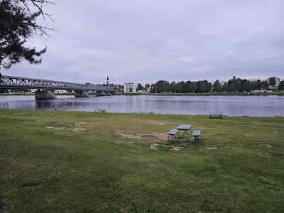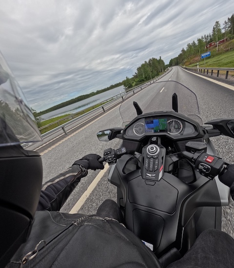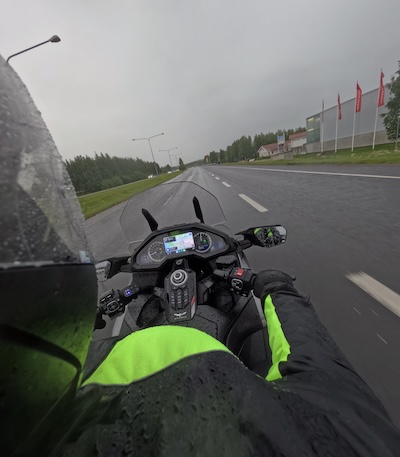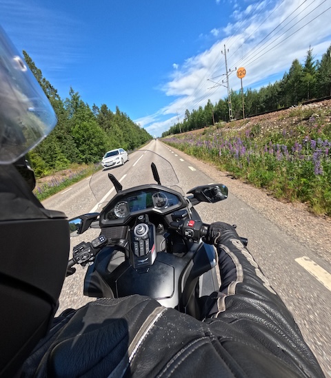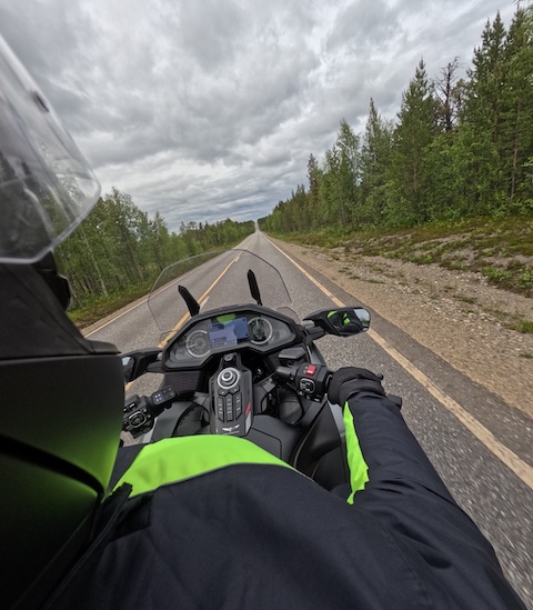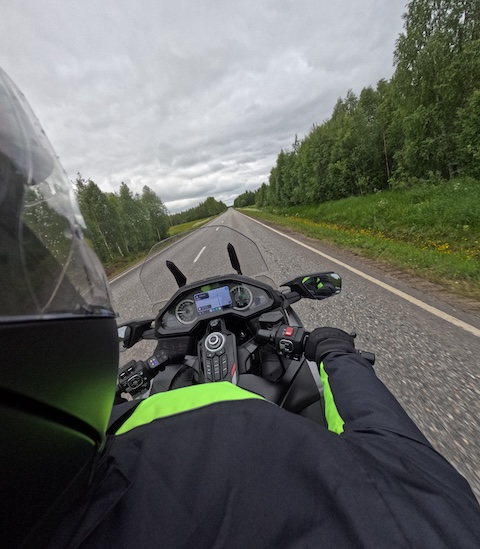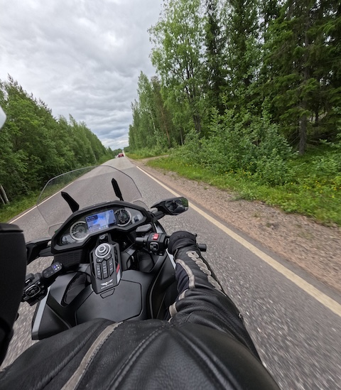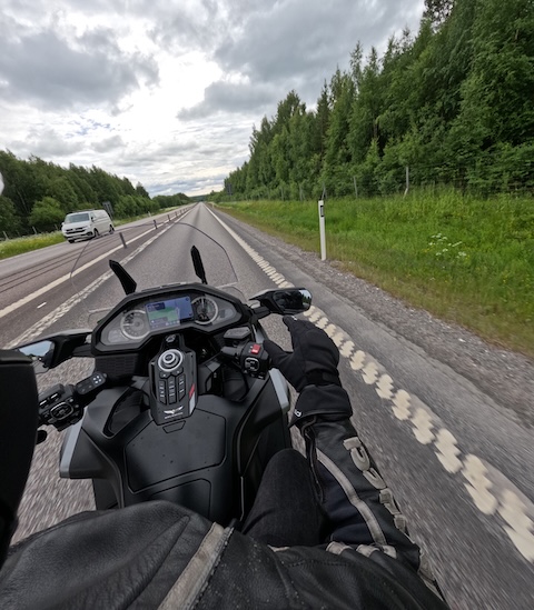 Nach dem Frühstück beim Supermarkt aufm Campingplatz dann erstmal los, wieder E4 Richtung norden, wieder etwas Strecke machen. Da das Wetter auch nicht sooo doll aussieht mit dunklen Wolken (und teils leichtem Regen) ist die Lust auf kleine Strassen auch eh überschaubar. Bei Haparanda endlich auf den Schildern "Finnland" - also, egal ob das Navi sagt "da abbiegen", ignorieren und den Schildern folgen. Doch irgendwo mitten in der Stadt ist plötzlich das nicht mehr ausgeschildert. Tja - im Nachhinein klar, die Grenze wurde ja auch passiert. Aber irgendwie nix gesehen: Keinen (alten) Grenzposten, keine Tafel mit Geschwindigkeiten,... Aber gut, raus aus der Stadt, Finnische Landstrassen. Zwar nur 80 erlaubt - aber dafür kilometerlang grade.