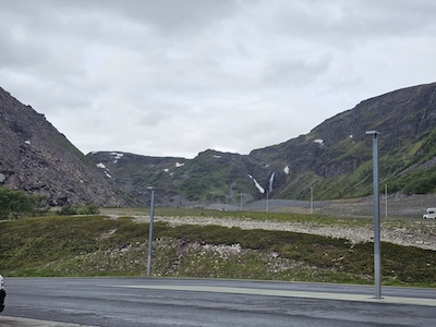 Ist zwar Landschaftlich nicht mehr so reizvoll, wenn man aber eben auch in einer überschaubaren Zeit zum Nordkapp will nicht zu ändern - und wieder kommt der Neid auf die junge Frau die eben dieses Problem nicht hat... Aber gut, man kann nicht alles haben. Ziel des Tages ist dann der Bergeforsparken Campingplatz - der sicher schon bessere Tage gesehen hat. Der Pool sieht schon eher nicht mehr nutzbar aus, das Grillhäuschen würde ich nur bei Starkregen und Gewitter betreten wollen - andersrum ist der Platz aber gut gelegen, ne Burger-Bude in der Nähe (die auch lecker ist) und für eine Nacht wohl mehr als ausreichend. WLAN (mal wieder) nicht, dafür das Duschen dann kostenlos. Dann mal hoffen das es in der Nacht nicht regnet...