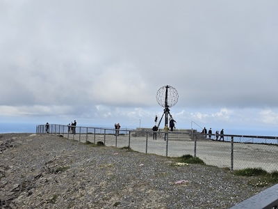 Landschaftlich abwechslungsreich mit manchmal bereits Meer, Seen oder auch Gebirge. Der Schnee nur noch selten mal da und auch dann nicht auf der Strasse. Und natürlich - div. Rentiere stehen am Strassenrand und lassen sich auch vom Verkehr nicht weiter stören. Bei der Ankunft am Nordkap dann erstmal natürlich: Bezahlen für den Parkplatz. Dann (wenn man möchte) nochmal bezahlen um in das Gebäude reinzugehen wo es wohl nen Restaurant, Shop usw. gibt. Kurz überlegt - aber bezahlen um ins Restaurant zu gehen wo man ja auch bezahlen muss? Nee - lassen wir mal. Also aussen ums Gebäude rum, Touri-Foto vorm Globus machen und glücklich sein das man den nördlichsten befahrbaren Punkt erreicht hat.