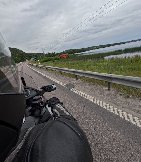Zumindest das "ohne Regen" hat geklappt. Zeltplatz hat jetzt zwar nicht an überzeugung gewonnen und spätestens als der Blick in den "meeting point" gefallen ist war auch klar das es dort den Frühstückskaffee nicht gibt. Dafür hätte man dann doch eher mal Laub entfernen müssen. Aber gut - dann halt Frühstück vom Supermarkt + Kaffee von der Tankstelle. Die Fahrt ist geplant eher wenig aufregend - immer die E4 hoch und das Ziel ist eher "strecke machen" als gross irgendwo lange die (sicherlich schöne) Landschaft bewundern. Es ist einfach nicht möglich immer die kleinen Strassen zu nehmen wenn man auch noch in der Zeit bis zum Nordkap hoch will und dann über Norwegen runter (... ok... eigentlich rauf...) möchte.